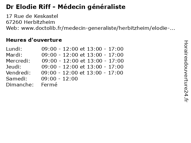 | Mercredi | 09:00-12:00 et 13:00-17:00 |