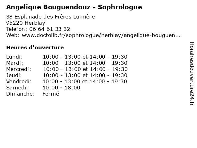 | Lundi | 10:00-13:00 et 14:00-19:30 |