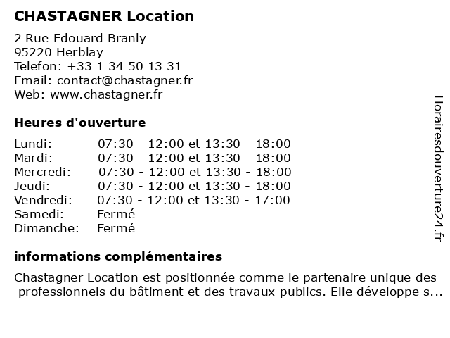 | Lundi | 07:30-12:00 et 13:30-18:00 |