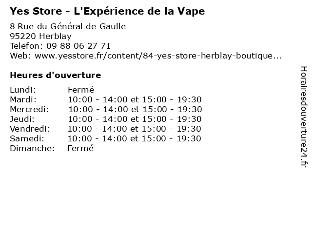 | Vendredi | 10:00-14:00 et 15:00-19:30 |