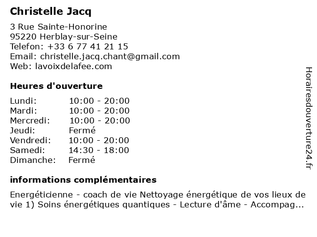 1 Bareche Ginape Christelle (Distance: 2,18 km) Avenue Fernand Bommelle, 95370 Montigny Les Cormeilles bareche, christelle, ginape, restaurants 2 Centre Municipal De Santé - Mme Christelle Bilan (Distance: 4,77 km) 9 Rue de la Station, 95132 Franconville bilan, bureau, centre, christelle, consultation, de, dr, maladie, med, mme, municipal, médecin, médecine, pratique, santé, thérapie, traitement 3 Petiau Berthillot Christelle (Distance: 5,27 km) Cuis In, 75018 Paris berthillot, christelle, petiau, restaurants 4 Christelle Onillon (Distance: 5,43 km) 15 ter Rue Du Prieuré, 78600 MAISONS LAFFITTE christelle, onillon 5 Christelle Coiffure (Distance: 9,55 km) 17 Rue du Général Leclerc, 78360 Montesson balayage, christelle, coiffeur, coiffure, coloration, coupe, mèche 6 Christelle Van Nieuwenberg - Sophrologue (Distance: 9,76 km) 23 Avenue de l'Europe, 78400 Chatou christelle, medecin, nieuwenberg, sante, sophro, sophrologue, van |