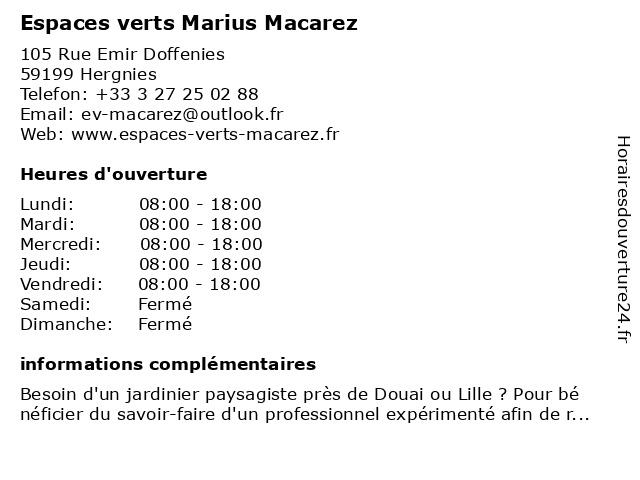 Horaires d'ouverture |