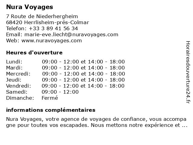 1 Royer Voyages (Distance: 7,09 km) 1 place du Marché aux Fruits, 68000 Colmar avions, royer, réservations, voyages 2 Prêt à Partir - Voyages Lesage (Distance: 7,29 km) 23 rue des Serruriers, 68000 Colmar agence, club, hôtel, lesage, partir, prêt, voyages 3 Jetset Voyages / LK Tours (Distance: 7,33 km) 4 Rue des Serruriers, 68000 Colmar agence, billet d'avion et hôtel pour votre club, jetset, lk, séjour, tours, voyages 4 Mugler Voyages (Distance: 7,34 km) 23 rue des Têtes, 68000 Colmar agence, book, hôtels, mugler, réservations, tourisme, vacances, voyages 5 LK Tours Voyages (Distance: 7,55 km) 42 rue des Jardins, 68000 Colmar agence, lk, tours, voyage, voyages 6 Fram Voyages (Distance: 7,66 km) 8 Rue Golbery, 68000 Colmar agence, billet d'avion et hôtel pour votre club, fram, séjour, voyage, voyages |