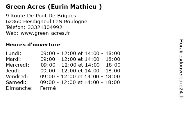 Lundi | 09:00-12:00 et 14:00-18:00 |
