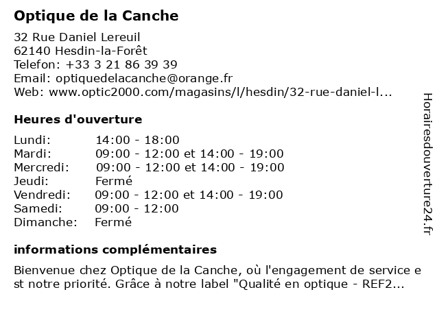 | Mercredi | 09:00-12:00 et 14:00-19:00 |