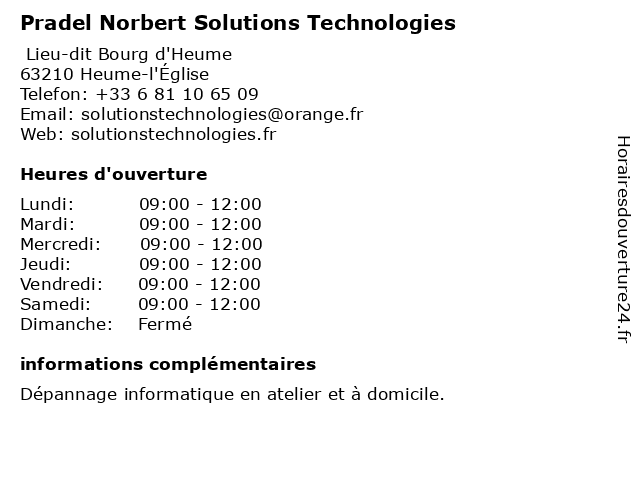 | Samedi | 09:00-12:00 |