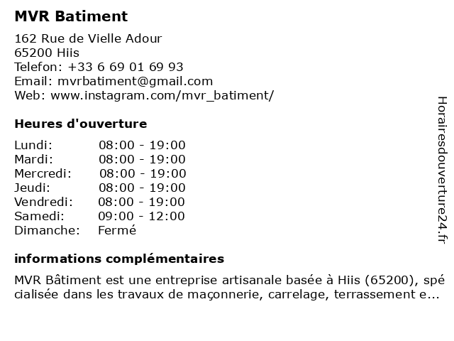 1 Batiment Multiservices Midi-Pyrenees (Distance: 7,37 km) 3 Avenue des Hêtres, 65310 Odos batiment, midi, multiservices, pyrenees 2 Sud Diagnostic Batiment (Distance: 10,67 km) 26 cours Gambetta, 65000 Tarbes batiment, diagnostic, sud 3 Carron Carrere Batiment (Distance: 12,62 km) 43 Rue Jean-Jacques Rousseau, 65800 Aureilhan batiment, carrere, carron 4 Societe de Reparation du Batiment (Distance: 13,27 km) Route de Trie sur Baïse, 65350 Boulin batiment, de, du, reparation, societe 5 ADY BATIMENT (Distance: 20,53 km) 8 Rue Saint Hippolyte, 65350 Marseillan ady, batiment, bâtiment, travaux d'extérieur, travaux d'intérieur 6 Weldom (Distance: 37,73 km) 30 Avenue du Nord, 31210 Montréjeau bati, batiment, bois, brico, bricolage, chauffage, droguerie, déco, décoration, electricité, jardin, luminaire, materiaux, outillage, outils, peinture, plomberie, quincaillerie, rangements, weldom |