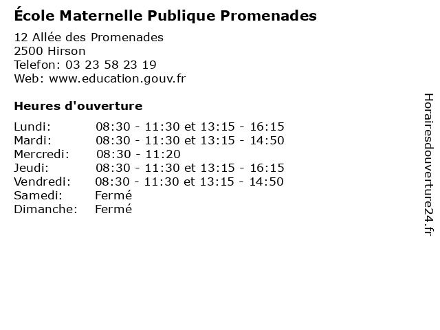 | Lundi | 08:30-11:30 et 13:15-16:15 |