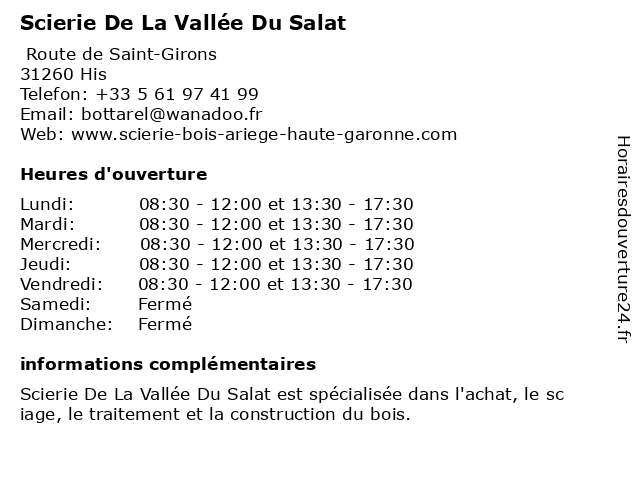 | Lundi | 08:30-12:00 et 13:30-17:30 |