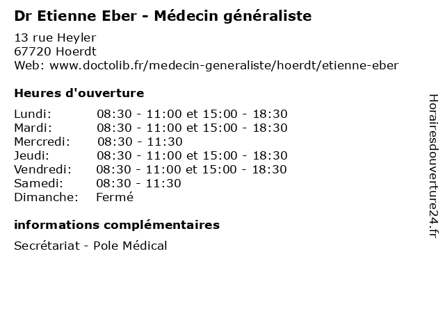 | Lundi | 08:30-11:00 et 15:00-18:30 |