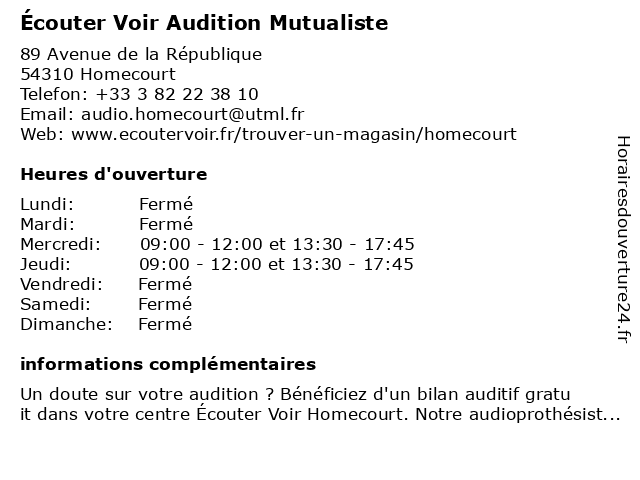 | Mercredi | 09:00-12:00 et 13:30-17:45 |