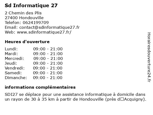 | Lundi | 09:00-21:00 |