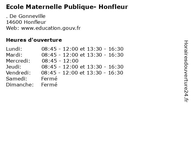 | Lundi | 08:45-12:00 et 13:30-16:30 |