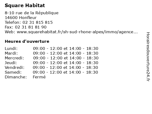 1 Square Habitat (Distance: 11,58 km) 75 avenue Rouget de Lisle, 76600 Le Havre agence, bailleur, habitat, immobilier, location, square, vente 2 Square Habitat (Distance: 12,25 km) 29 avenue René Coty, 76600 Le Havre agence, bailleur, habitat, immobilier, location, square, vente 3 Square Habitat (Distance: 12,91 km) 38 Rue Désiré le Hoc, 14800 Deauville agence, bailleur, habitat, immobilier, location, square, vente 4 Square Habitat (Distance: 15,26 km) 49 Rue Saint Michel, 14130 Pont l'Evêque habitat, listings, properties, real estate, rent, rental management, square 5 HABITAT CONCEPT HONFLEUR (Distance: 1,67 km) 13 Rue des Quatre Francs, 14600 La Rivière-Saint-Sauveur concept, habitat, honfleur 6 Veolia Habitat Services (Distance: 10,67 km) 26 Rue d'Iena, 76600 Le Havre aménagement, equipement .services, habitat, services, veolia |