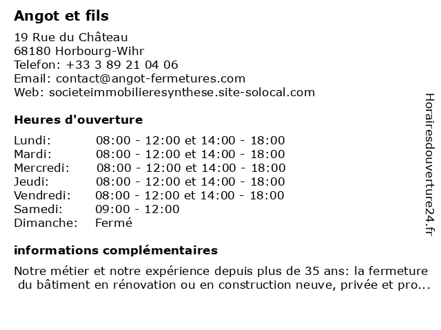 | Lundi | 08:00-12:00 et 14:00-18:00 |