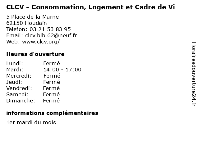 1 CLCV - Consommation, Logement et Cadre de Vi (Distance: 2,83 km) 161 Rue Arthur Lamendin, 62700 Bruay-la-Buissière association, cadre, clcv, consommateur, consommation, de, environnement, et, logement, vi 2 CLCV - Consommation, Logement et Cadre de Vi (Distance: 2,83 km) 39 Rue Pierre Bérégovoy, 62700 Bruay-la-Buissière association, cadre, clcv, consommateur, consommation, de, environnement, et, logement, vi 3 CLCV - Consommation, Logement et Cadre de Vi (Distance: 8,85 km) 121 Boulevard des Etats-Unis, 62400 Béthune association, cadre, clcv, consommateur, consommation, de, environnement, et, logement, vi 4 CLCV - Consommation, Logement et Cadre de Vi (Distance: 16,35 km) 49 Rue Jean Baptiste Defermez, 62800 Liévin association, cadre, clcv, consommateur, consommation, de, environnement, et, logement, vi 5 CLCV - Consommation, Logement et Cadre de Vi (Distance: 18,08 km) - Rue Paul Emile Victor, 62138 Auchy-les-Mines association, cadre, clcv, consommateur, consommation, de, environnement, et, logement, vi 6 Direction régionale de l'environnement, de l'aménagement et du logement (DREAL) (Distance: 8,61 km) - Avenue de Paris, 62400 Béthune amenagement, commune, de, direction, dreal, du, environnement, et, information, l'aménagement, l'environnement, logement, public, régionale, service |