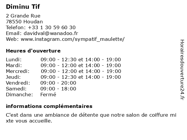 Lundi | 09:00-12:30 et 14:00-19:00 |