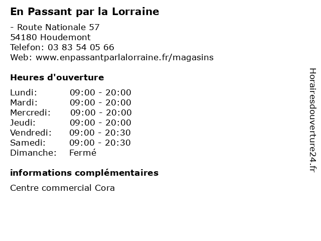 | Samedi | 09:00-20:30 |