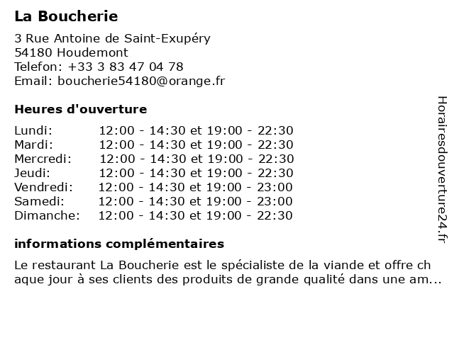 | Jeudi | 12:00-14:30 et 19:00-22:30 |