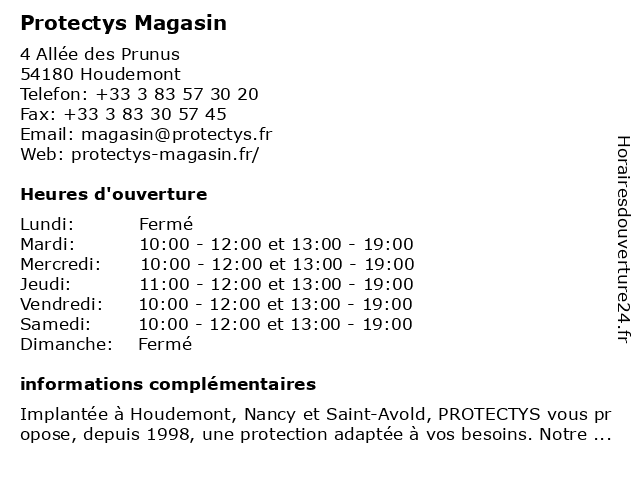 | Samedi | 10:00-12:00 et 13:00-19:00 |