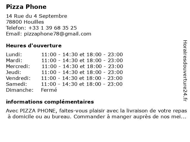| Lundi | 11:00-14:30 et 18:00-23:00 |