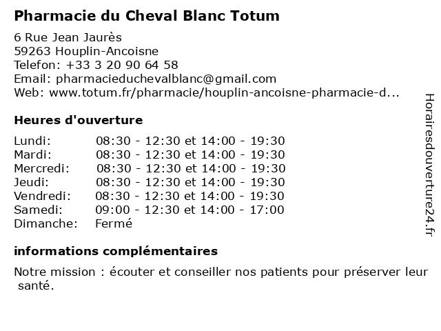 | Lundi | 08:30-12:30 et 14:00-19:30 |