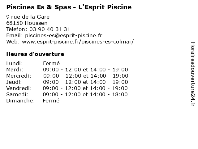 | Mercredi | 09:00-12:00 et 14:00-19:00 |