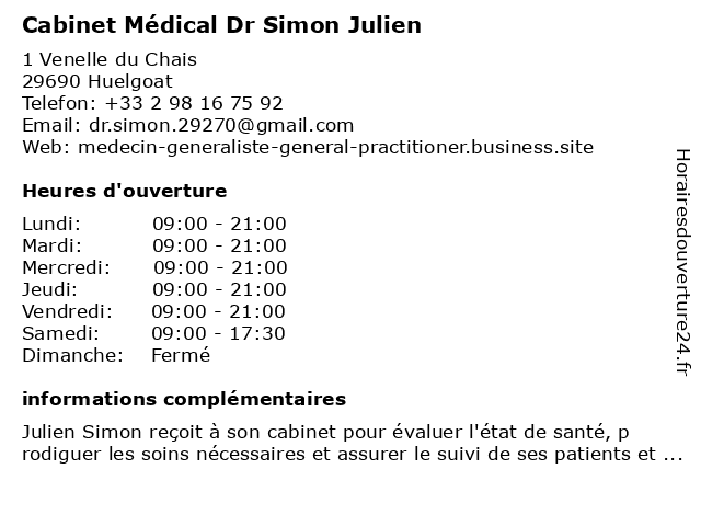Termes de recherche pour Cabinet Médical Dr Simon Julien:julien, cabinet, medical, simon, dr |
