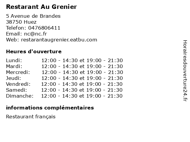 | Jeudi | 12:00-14:30 et 19:00-21:30 |