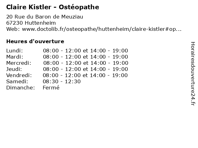 | Lundi | 08:00-12:00 et 14:00-19:00 |