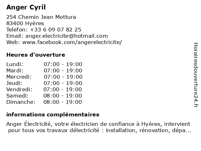 | Lundi | 07:00-19:00 |