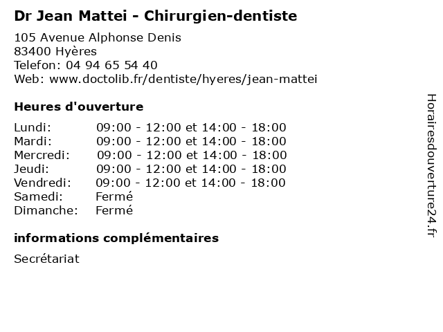 Lundi | 09:00-12:00 et 14:00-18:00 |