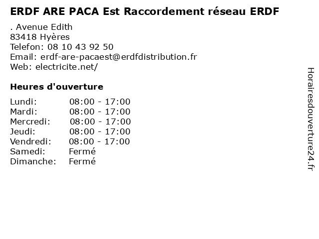 1 ERDF ARE PACA Est Dépannage réseau (Distance: 0,00 km) . Avenue Edith, 83418 Hyères agences, are, dépannage, electricité, erdf, est, paca, réseau, service, services, énergie 2 ERDF ARE PACA Est Payer une facture ou déclarer une auto-relève (Distance: 0,00 km) . Avenue Edith, 83418 Hyères agences, are, auto, déclarer, electricité, erdf, est, facture, ou, paca, payer, relève, service, services, une, énergie 3 ERDF ARE PACA Est Infos jours EJP (Distance: 0,00 km) . Avenue Edith, 83418 Hyères agences, are, ejp, electricité, erdf, est, infos, jours, paca, service, services, énergie 4 ERDF ARE PACA Est Service clients grands comptes (Distance: 0,00 km) . Avenue Edith, 83418 Hyères agences, are, clients, comptes, electricité, erdf, est, grands, paca, service, services, énergie 5 ERDF ARE PACA Est Service client entreprises (Distance: 0,00 km) . Avenue Edith, 83418 Hyères agences, are, client, electricité, entreprises, erdf, est, paca, service, services, énergie 6 ERDF ARE PACA Est Service clients (général - professionnels) (Distance: 0,00 km) . Avenue Edith, 83418 Hyères agences, are, clients, electricité, erdf, est, général, paca, professionnels, service, services, énergie |