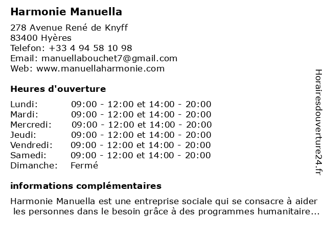 | Lundi | 09:00-12:00 et 14:00-20:00 |