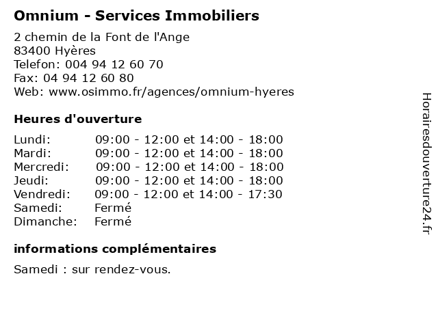 | Lundi | 09:00-12:00 et 14:00-18:00 |