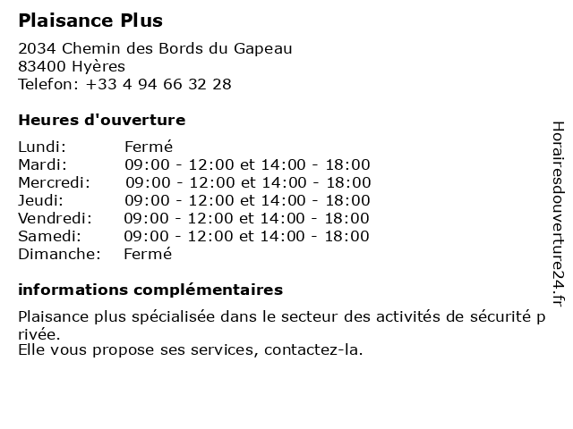 | Samedi | 09:00-12:00 et 14:00-18:00 |