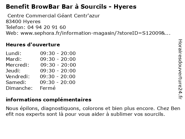 Termes de recherche pour Benefit BrowBar Bar à Sourcils - Hyeres:bar, salon de beauté, hyéres, benefit, sourcils, magasin de produits cosmétiques, browbar |