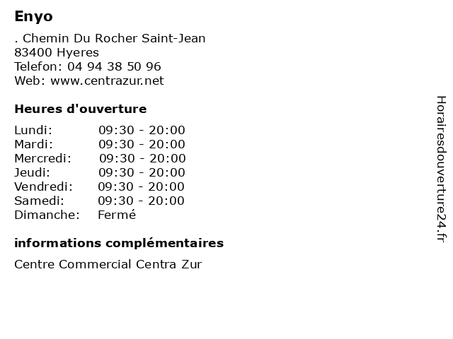 1 ENYO (Distance: 1,33 km) - Chemin du Rocher Saint-Jean, 83400 Hyères chaussures de sport, enyo, matériel de sport, sports, vetements de sport 2 5 à SEC (Distance: 0,00 km) . Chemin Du Rocher Saint-Jean, 83400 Hyeres cafe, chaussures, enfants, homme, lingerie, mode femme, restaurant, sec, service 3 Calzedonia (Distance: 0,00 km) . Chemin Du Rocher Saint-Jean, 83400 Hyeres cafe, calzedonia, chaussures, enfants, homme, lingerie, mode femme, restaurant, service 4 Christine Laura (Distance: 0,00 km) . Chemin Du Rocher Saint-Jean, 83400 Hyeres cafe, chaussures, christine, enfants, homme, laura, lingerie, mode femme, restaurant, service 5 Claire's (Distance: 0,00 km) . Chemin Du Rocher Saint-Jean, 83400 Hyeres cafe, chaussures, claire's, enfants, homme, lingerie, mode femme, restaurant, service 6 Comptoirs Casino (Distance: 0,00 km) . Chemin Du Rocher Saint-Jean, 83400 Hyeres cafe, casino, chaussures, comptoirs, enfants, homme, lingerie, mode femme, restaurant, service |