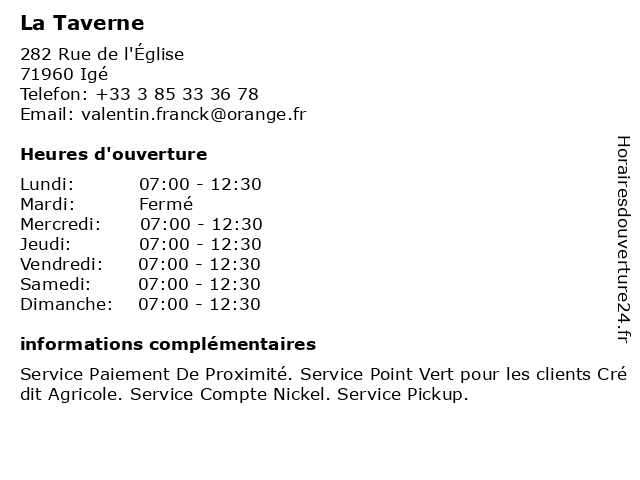 1 Au Bureau (Distance: 10,98 km) Rue Du Lieutenant-colonel André Marlin, 71000 Mâcon au, bar, bar sportif, bureau, pub, restaurant de hamburgers, restaurant européen, restaurant français, restaurant irlandais, taverne 2 LA TAVERNE DU PONT (Distance: 33,26 km) 709 Route Du Bourg, 71470 LA CHAPELLE-THECLE du, la, pont, taverne 3 La Taverne Bressane (Distance: 34,63 km) 807 Route de Louhans, 71290 Rancy bar, bistro, bistrot, brasserie, bressane, café, la, restaurant, restauration, taverne 4 Garage de Malaval - Sarl Taverne (Distance: 39,17 km) 20 Chemin Des Jarois, 01851 Marboz automobile, de, entretien, garage, malaval, neuf, occasion, pneus, réparation, sarl, taverne, vente, vidange 5 La Taverne (Distance: 39,66 km) Rue Gabriel Chevalier, 69460 Vaux En Beaujolais eric, mourier, restaurants, taverne 6 Au Bureau (Distance: 42,97 km) 1 Rue René Cassin, 71100 Chalon sur Saône au, bar, bar sportif, bureau, pub, restaurant de hamburgers, restaurant européen, restaurant français, restaurant irlandais, taverne |
