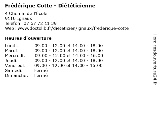 | Lundi | 09:00-12:00 et 14:00-18:00 |