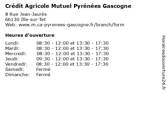 | 1 Crédit Agricole Sud Méditerranée (Distance: 3,72 km) 8 Avenue Jean Jaurès, 66130 Ille-sur-Tet agence, agricole, assurance, bancaire, banque, crédit, méditerranée, sud 2 Coopérative Agricole Ille Fruits (Distance: 4,01 km) 42 Route de Corbère, 66130 Ille-sur-Têt agricole, coopérative, fruits, ille 3 Crédit Agricole (Distance: 4,63 km) 1 Place de la Liberté, 66320 Vinca agence, agricole, assurance, bancaire, banque, crédit 4 Crédit Agricole (Distance: 9,88 km) 114 Rue Jean Jaurès, 66170 Millas agence, agricole, assurance, bancaire, banque, crédit 5 Crédit Agricole (Distance: 12,91 km) 2 Place de France, 66170 Saint-Feliu d'Avall agence, agricole, assurance, bancaire, banque, crédit 6 Caisse D'Allocations Familiales (Caf) des Pyrénées-Orientales (Distance: 14,13 km) 32 Rue Pasteur, 66500 Prades administration, assoc, caf, caisse, d'allocations, des, familiales, orientales, pyrénées, services, services publics |
