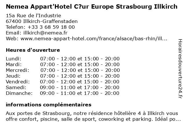 1 Nemea Coliving Illkirch C?ur Europe (Distance: 0,04 km) 15b Rue de l'Industrie, 67400 Illkirch-Graffenstaden appartement étudiant, c?ur, coliving, coworking, europe, illkirch, logement pessac, logement étudiant, nemea, résidence étudiante, salle de sport, studio, studio meublé 2 Hotel le Domino** (Distance: 1,36 km) 1 Rue du Rempart, 67400 Illkirch-Graffenstaden bar, domino**, hotel, le, restaurant, service 3 Hotel Balladins (Distance: 4,83 km) 7 Rue de la gare aux marchandises, 67380 Lingolsheim balladins, bar, hotel, restaurant, service 4 Best Western Hotel De France (Distance: 5,49 km) 20 Rue Du Jeu Des Enfants, 67000 Strasbourg best, cafe, de, france, hotel, restaurant, service, western 5 Hotel Premiere Classe (Distance: 6,68 km) 6 Rue Cerf Berr, 67200 Strasbourg bar, chambres, classe, hotel, premiere, restaurant, service 6 Best Western Hotel Le Rhenan (Distance: 16,86 km) 1 Chemin des Moissons, 67120 Dorlisheim best, cafe, hotel, le, restaurant, rhenan, service, western |