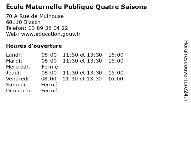 | Mardi | 08:00-11:30 et 13:30-16:00 |
