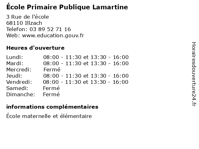 | Lundi | 08:00-11:30 et 13:30-16:00 |