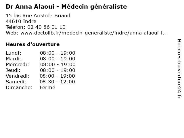 | Lundi | 08:00-19:00 |