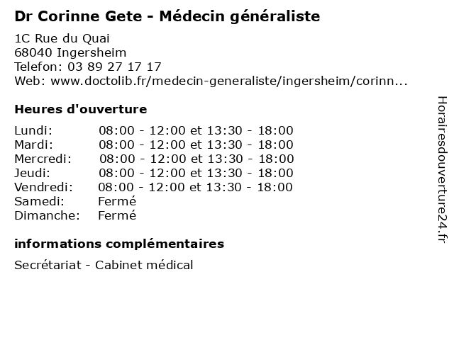 | Lundi | 08:00-12:00 et 13:30-18:00 |