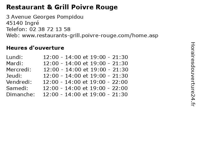 | Vendredi | 12:00-14:00 et 19:00-22:00 |
