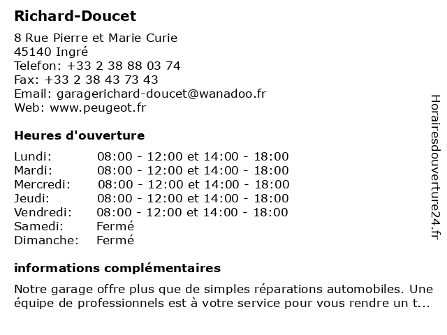 | Samedi | Fermé |