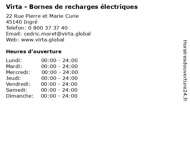 1 Virta - Bornes de recharges électriques (Distance: 2,67 km) - Rue Alexandre Avisse, 45000 Orléans automobile, borne, bornes, de, recharge, recharges, virta, électrique, électriques 2 Virta - Bornes de recharges électriques (Distance: 3,22 km) 22 Boulevard Rocheplatte, 45000 Orléans automobile, borne, bornes, de, recharge, recharges, virta, électrique, électriques 3 Virta - Bornes de recharges électriques (Distance: 3,39 km) - Place du Vieux Marché, 45000 Orléans automobile, borne, bornes, de, recharge, recharges, virta, électrique, électriques 4 Virta - Bornes de recharges électriques (Distance: 3,41 km) - Place du Général de Gaulle, 45000 Orléans automobile, borne, bornes, de, recharge, recharges, virta, électrique, électriques 5 Virta - Bornes de recharges électriques (Distance: 3,47 km) 1 Rue de la République, 45000 Orléans automobile, borne, bornes, de, recharge, recharges, virta, électrique, électriques 6 Virta - Bornes de recharges électriques (Distance: 3,72 km) - Avenue de Paris, 45000 Orléans automobile, borne, bornes, de, recharge, recharges, virta, électrique, électriques |