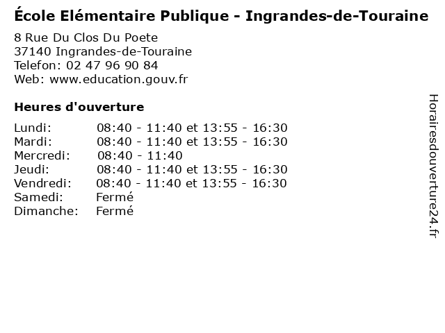 | Mardi | 08:40-11:40 et 13:55-16:30 |